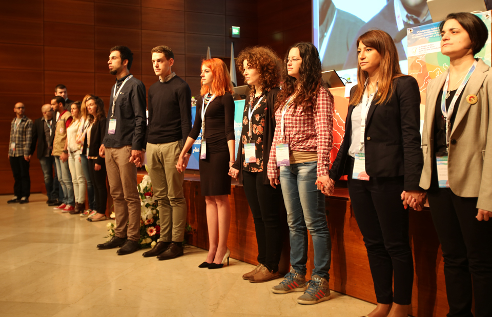 Cogidos de las manos, los jóvenes representantes de las Sociedades Nacionales del Mediterráneo presentaron la Declaración de la Juventud a los altos cargos de la región.