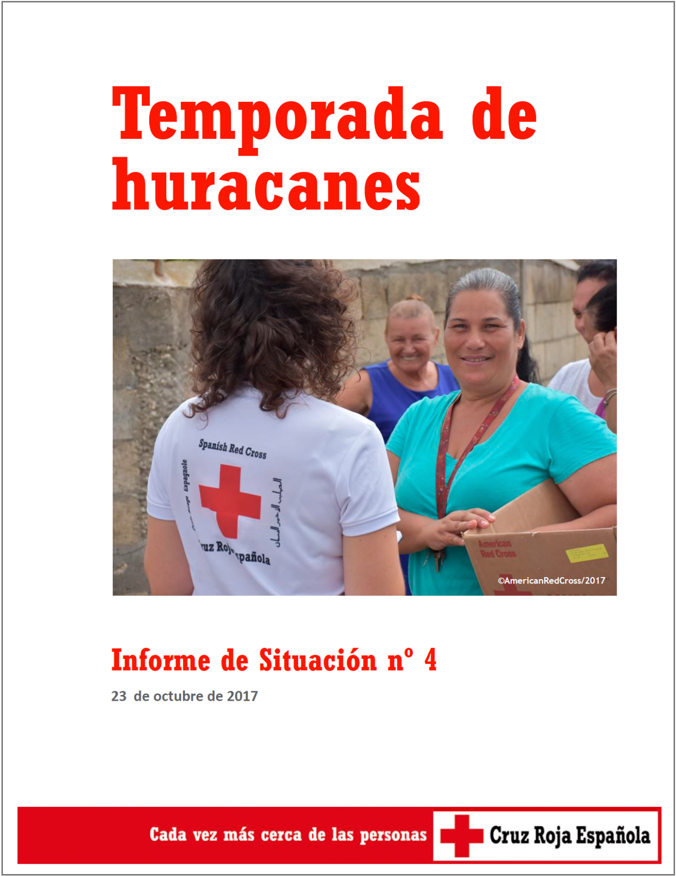 Cruz Roja Española ha apoyado con diversas acciones a las Sociedades Nacionales de Cuba, Estados Unidos y Antillas Francesas; y ha enviado ayuda en efectivo para la primera respuesta a las Sociedades Nacionales de: